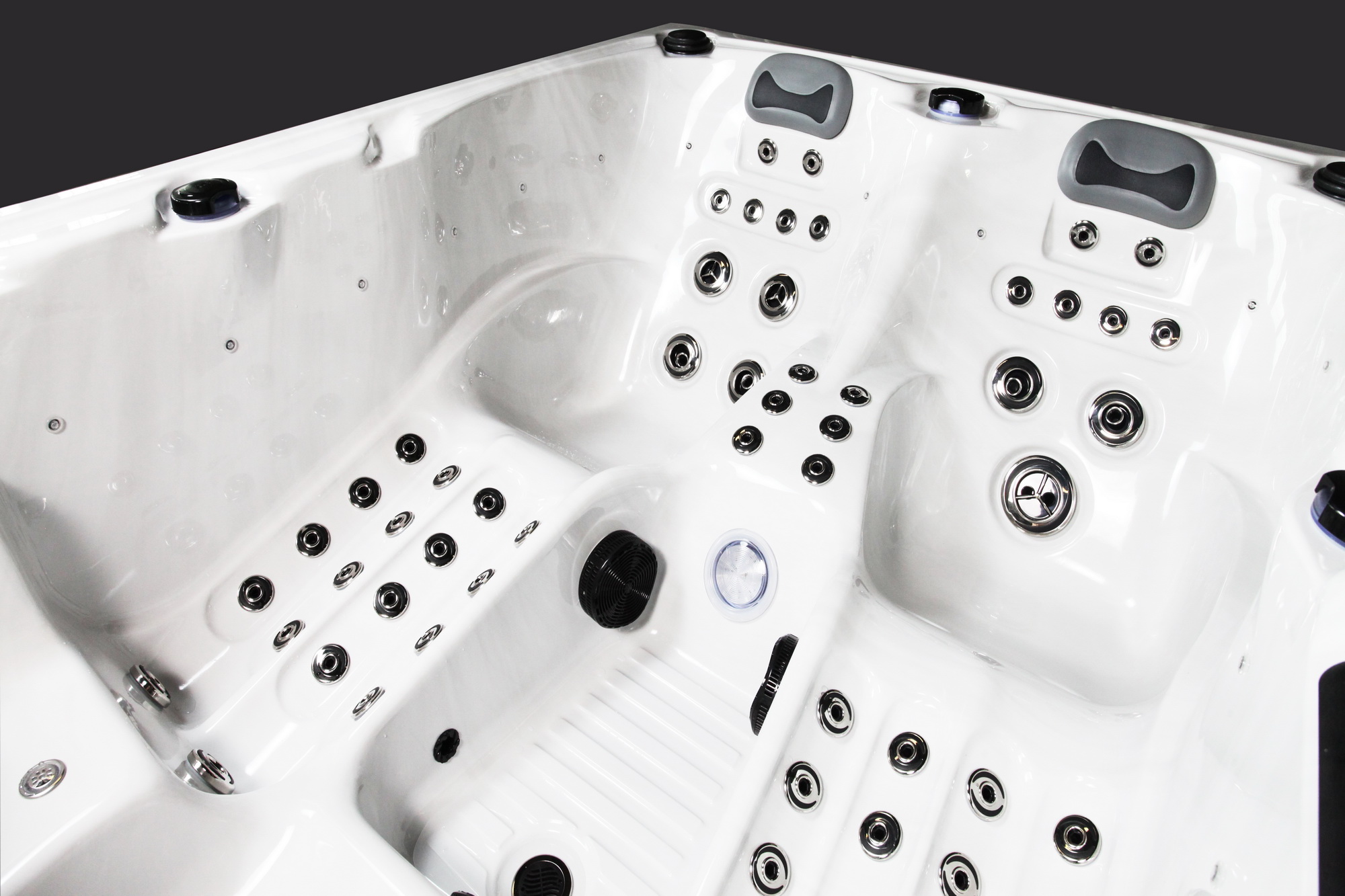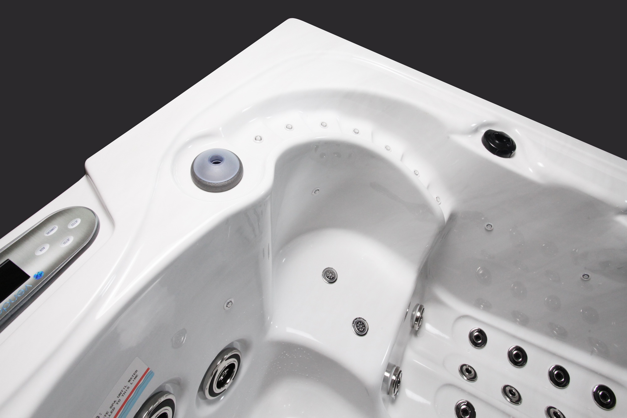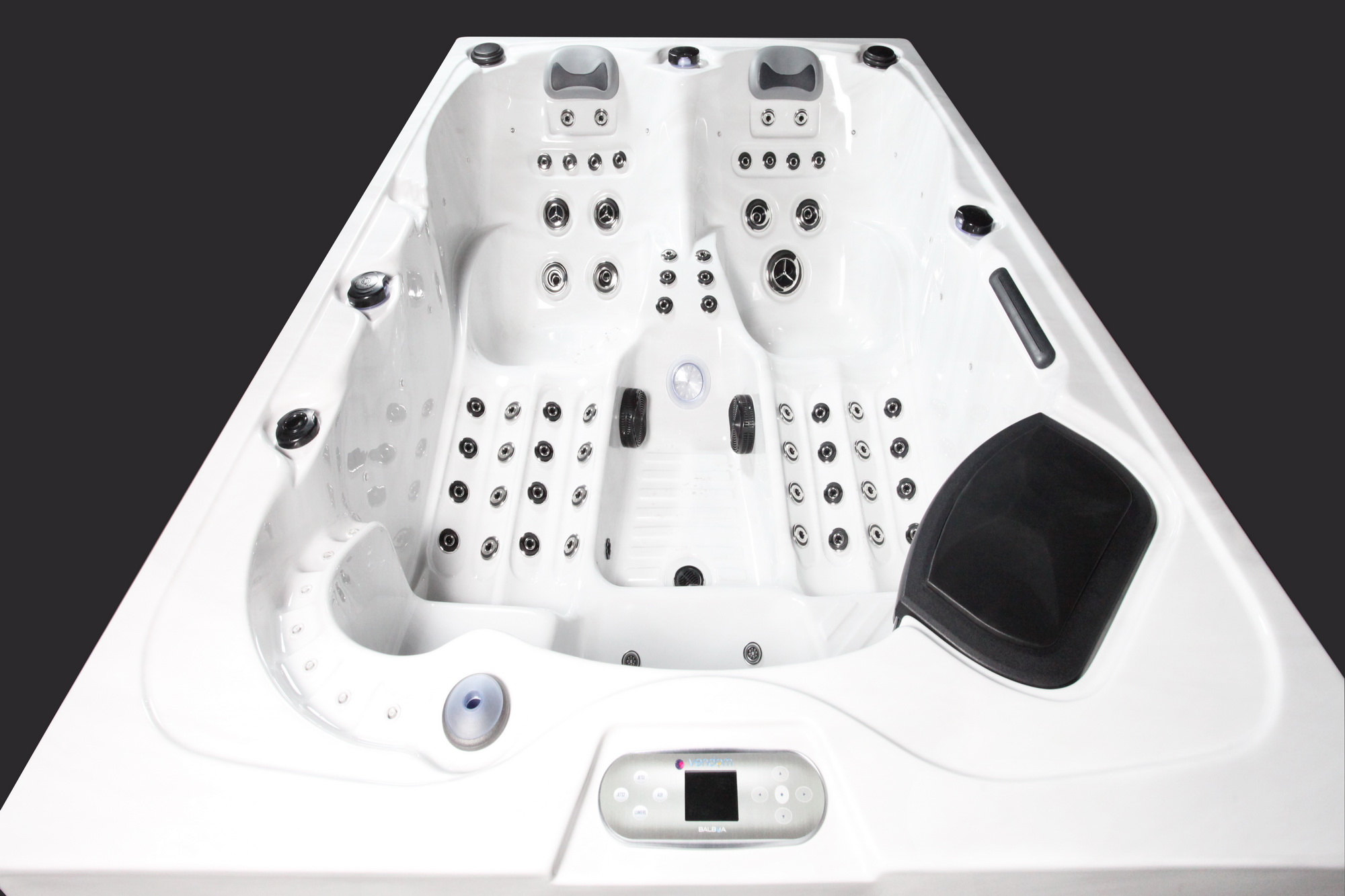 La puissance des jets de massage, la durée, la température et les programmes de séance sont contrôlés par le panneau de commande digital. Chaque place fournit un programme de massage spécifique pour une relaxation et une ergonomie optimale.